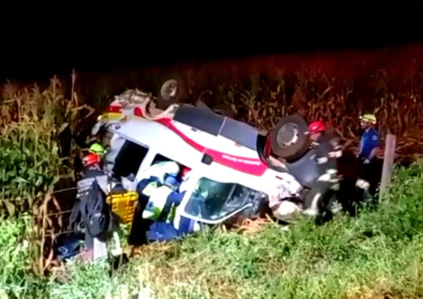 Acidente com van que transportava equipe que trabalha no carregamento de frangos nos municípios de Ipuaçu, Bom Jesus e região – Foto: Rádio Super Difusora