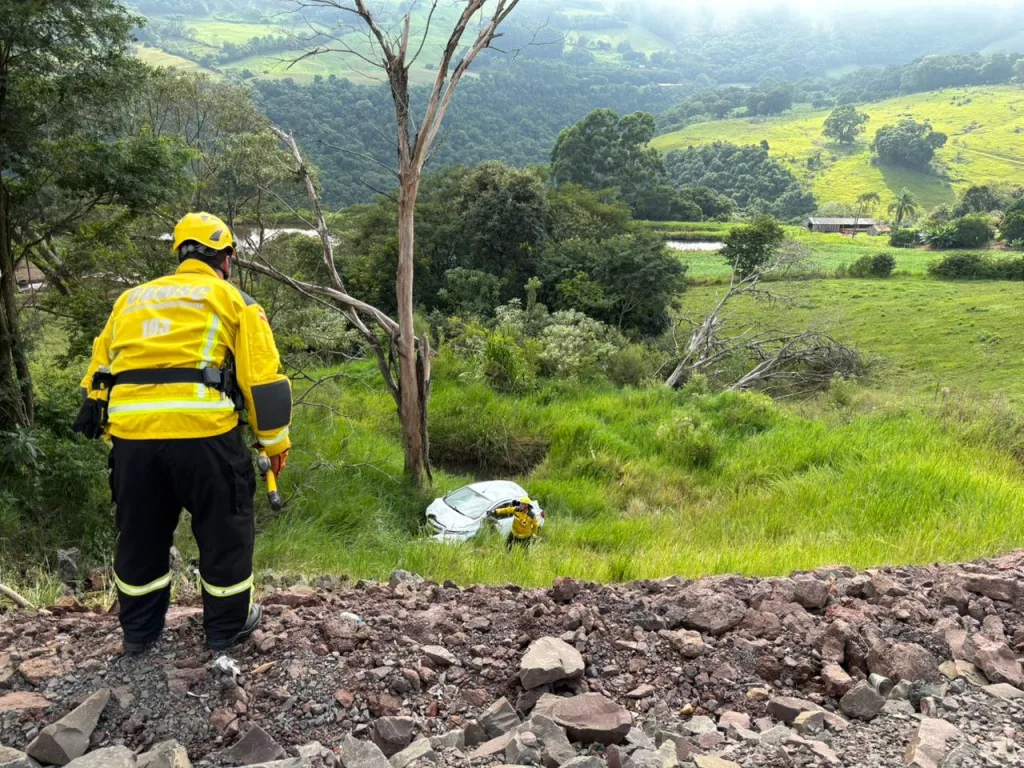 Na manhã deste domingo, 8, um veículo GM Chevrolet Onix branco saiu da pista e caiu em uma ribanceira na SC-283. O acidente ocorreu por volta das 9h15, próximo a Prime Solar, em linha São Paulo, Seara.