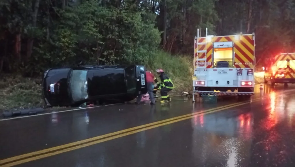 No local, os socorristas confirmaram o capotamento de um Fiat Palio, com placas de Lindóia do Sul. O condutor era o único ocupante do veículo e estava preso mecanicamente no interior do automóvel.