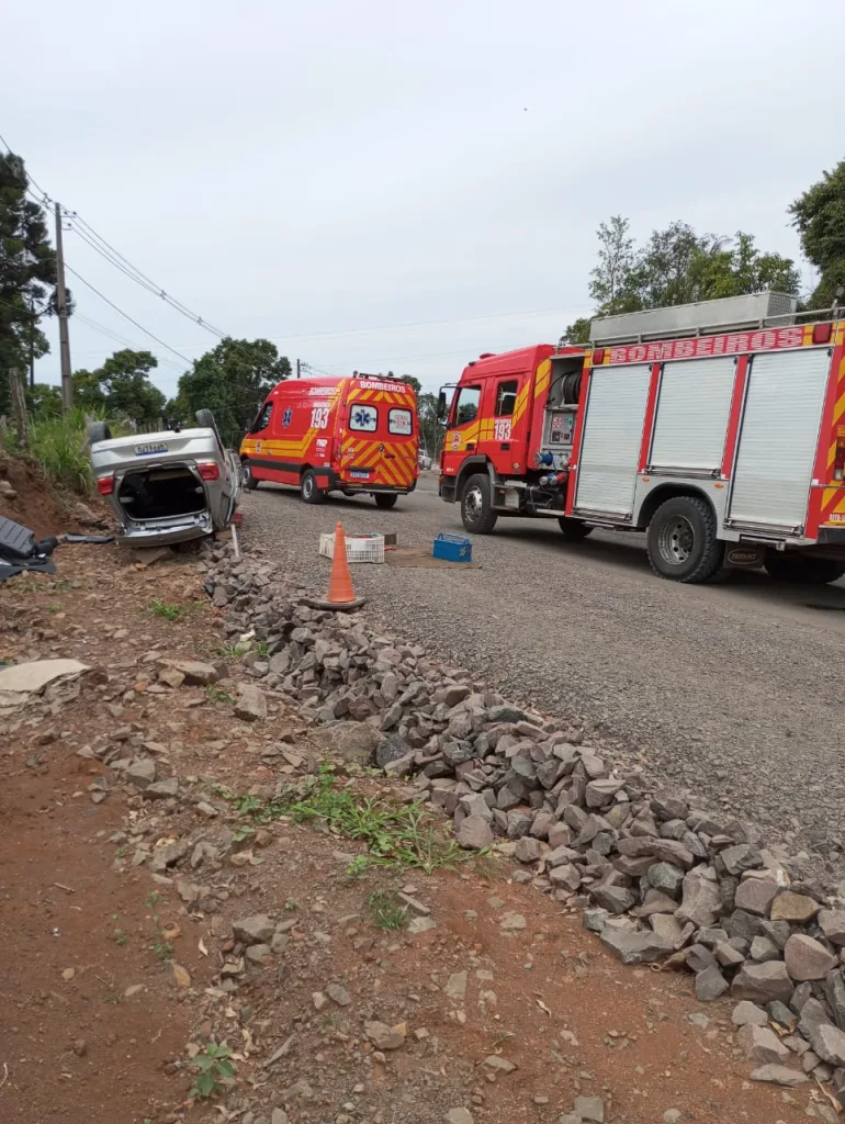 Por volta das 11h45 deste domingo, 21, os Bombeiros foram acionados para atender um capotamento de veículo na SC-283, entre Seara e Chapecó. Ao chegar no local, a guarnição constatou que se tratava de saída de pista seguida de capotamento, onde o carro estava com o teto no chão, ao lado da via de rolamento. A condutora estava consciente e orientada, mas presa no interior do veículo. Ela apresentava ferimentos no cotovelo e mão.