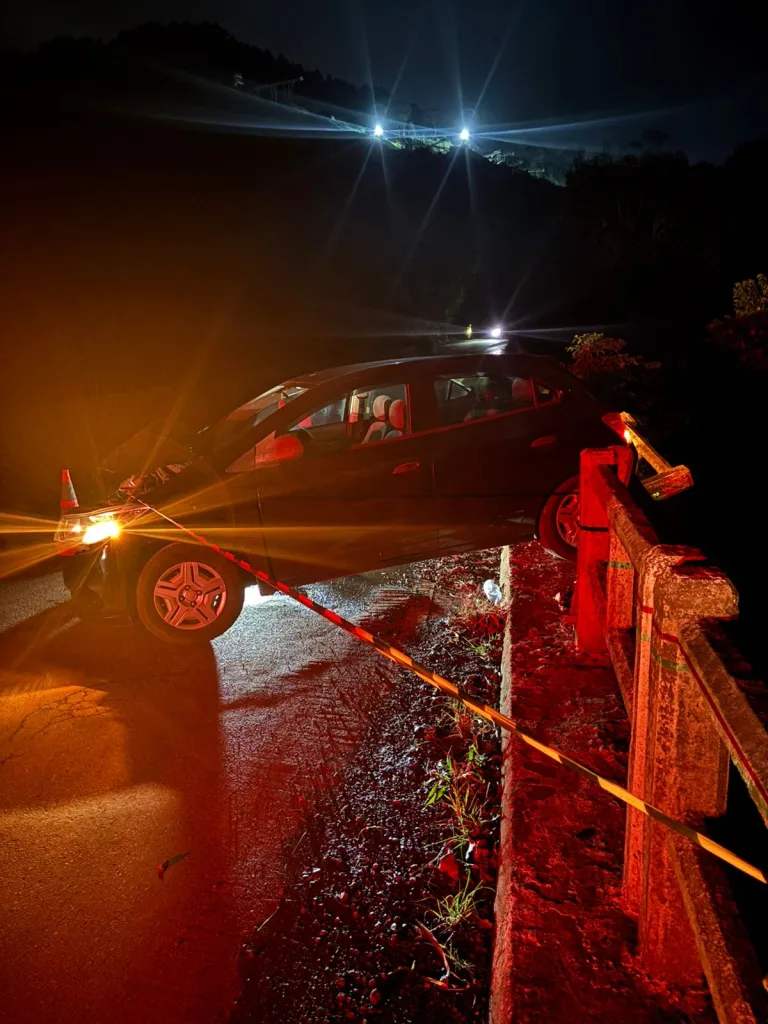 Envolvidos um veículo GM Equinox e um GM Onix. Segundo informações um dos veículos rodou na pista ocasionando a colisão. O Onix bateu na mureta da ponte e por pouco não caiu no rio.