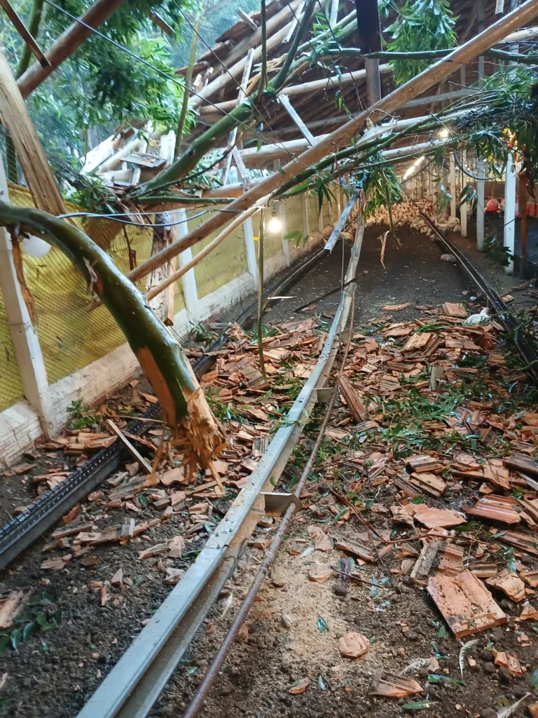 Entre os registros estão a queda de árvore sobre um aviário e sobre a rede de energia elétrica, além de danos em 16 residências. Duas casas foram invadidas pela água e receberam atendimento da Assistência Social, sem necessidade de realocação ou abertura de abrigos. Uma família ficou desalojada em função dos danos estruturais em sua residência.