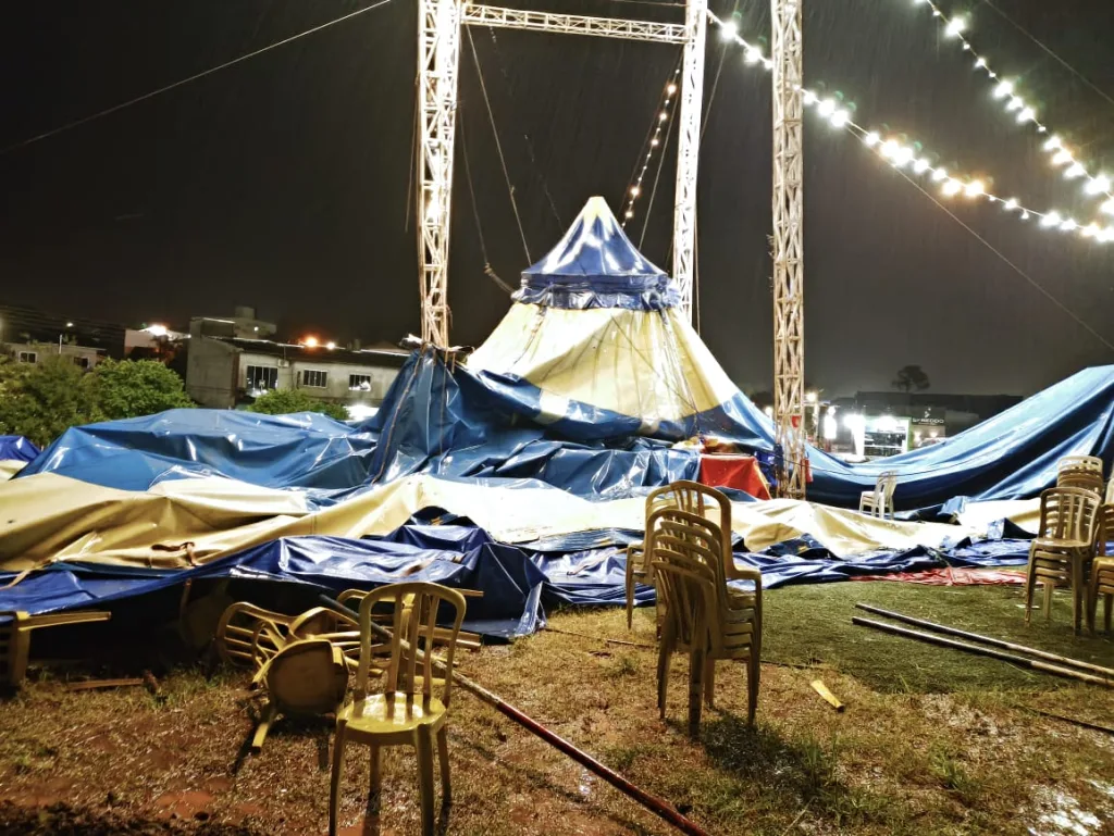 Um dos casos de maior destaque foi a queda da estrutura de um circo montado na Rua Nereu Ramos. Apesar dos danos significativos, não houve registro de feridos. A chuva e os ventos ainda provocaram a queda de uma tela de proteção sobre a rede elétrica na região central e a queda de uma árvore sobre a fiação no Bairro Bela Vista.