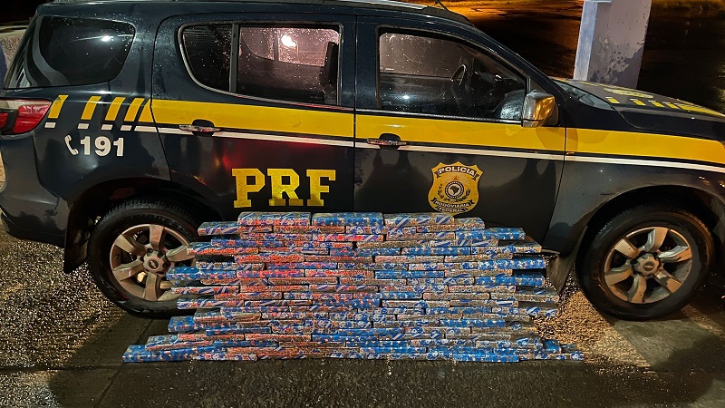 Na abordagem, o flagrante: 102 tijolos de maconha. Condutor que foi preso já possui vários passagens por tráfico de drogas. O motorista é de Canoinhas-SC. Com informações, Sublinhado.
