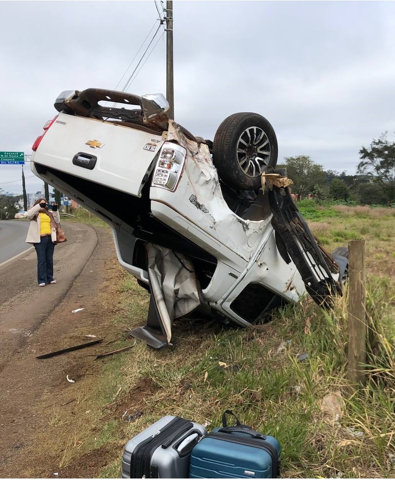 O motorista da S10 contou que saiu de Foz do Iguaçu (PR) e se deslocava para Passo Fundo (RS) para visitar a filha. Com o impacto da colisão, a caminhonete ficou com o rodado para cima às margens da rodovia. Os ocupantes desse veículo não se feriram.