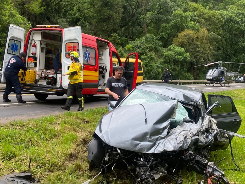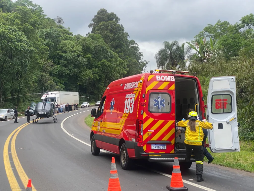 De acordo com informações, foi uma colisão frontal entre um automóvel e um caminhão. Equipes do Corpo de Bombeiros já realizavam o atendimento no local quando a equipe aeromédica chegou.