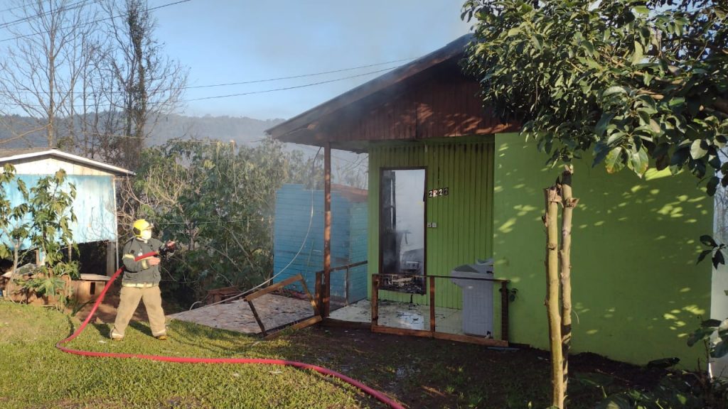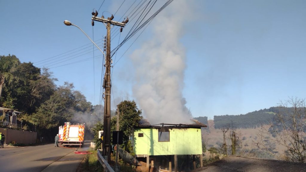 Um incêndio numa residência mista (de madeira e alvenaria) foi registrado no início da manhã desta terça-feira, 3 de agosto, no bairro São João, próximo às Ferragens Tochetto, na saída para Itá.