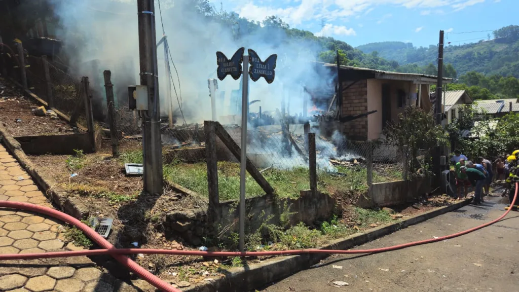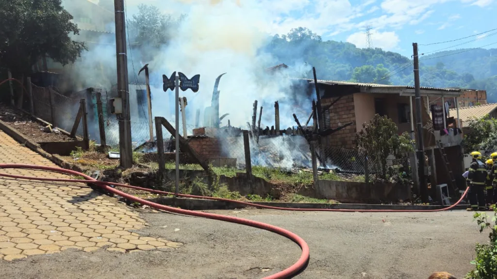 Um incêndio destruiu uma residência na rua Valdir Giaretta, esquina com a rua Luiza Zanoello, no bairro Vila Esperança em Seara. A ocorrência foi registrada às 13h30 deste sábado. Não houve vítimas. Bombeiros realizaram o combate e rescaldo. Segundo populares no local, a suspeita é de que a própria moradora, que reside com um irmão, tenha ateado fogo na casa. Matéria em atualização.