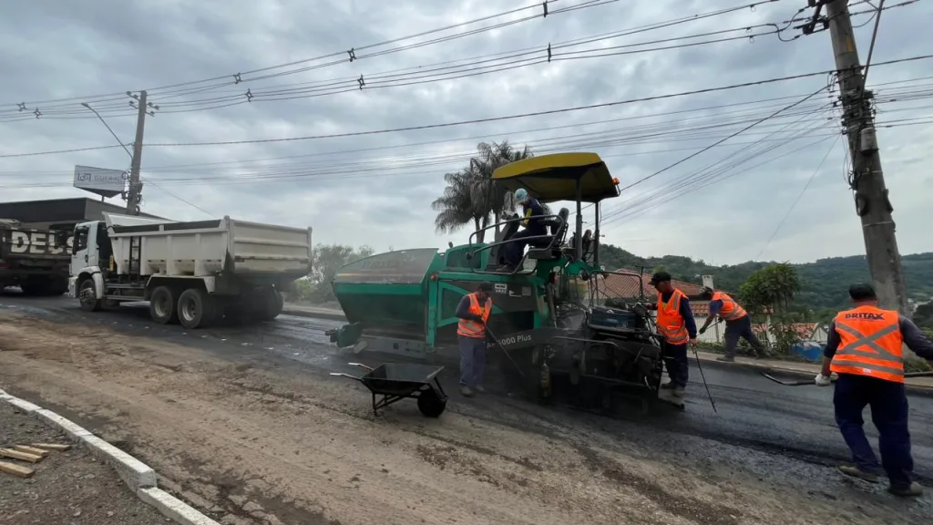 A empresa que executas os trabalhos de pavimentação é a Britax de Concórdia, contratada pelo Consórcio Compasa/Ellenco.