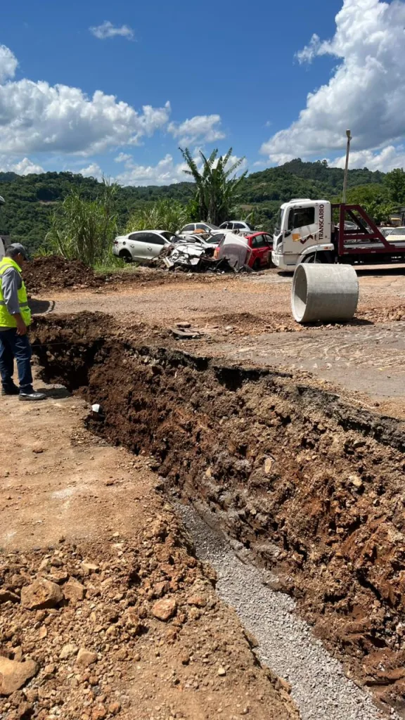 Iniciaram nesta semana as obras para melhoria da sarjeta e tubulação numa curva da SC-283 em Seara, na saída para Concórdia. O local costuma acumular água na pista, causando transtornos e danos no asfalto. A empresa LCM executa os trabalhos. Se o clima colaborar, os serviços deverão ser finalizados em duas semanas. Ainda nesta terça-feira, o trânsito está no sistema Pare e Siga.
