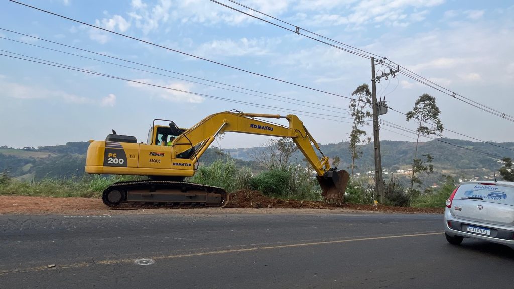 Máquinas do Consórcio Compasa/Ellenco, vencedor da licitação, iniciaram os trabalhos de limpeza e terraplanagem na saída da cidade de Seara em direção a Arvoredo.
