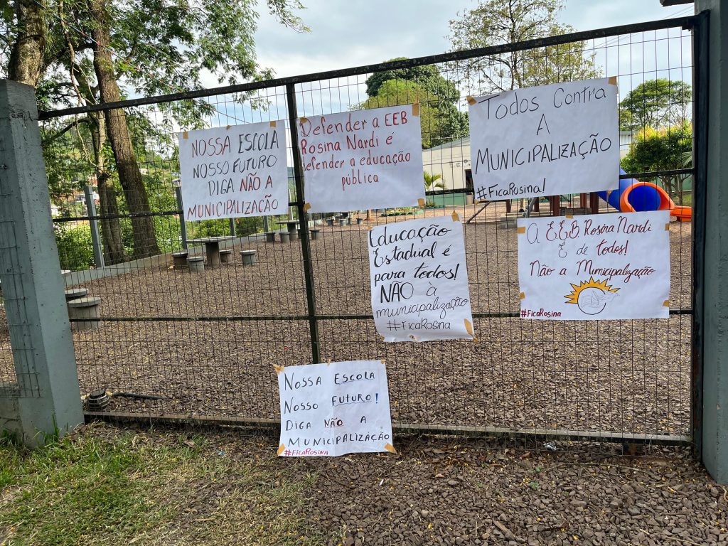Vídeo: Pais e alunos da Escola Rosina Nardi realizaram manifestação contra a municipalização