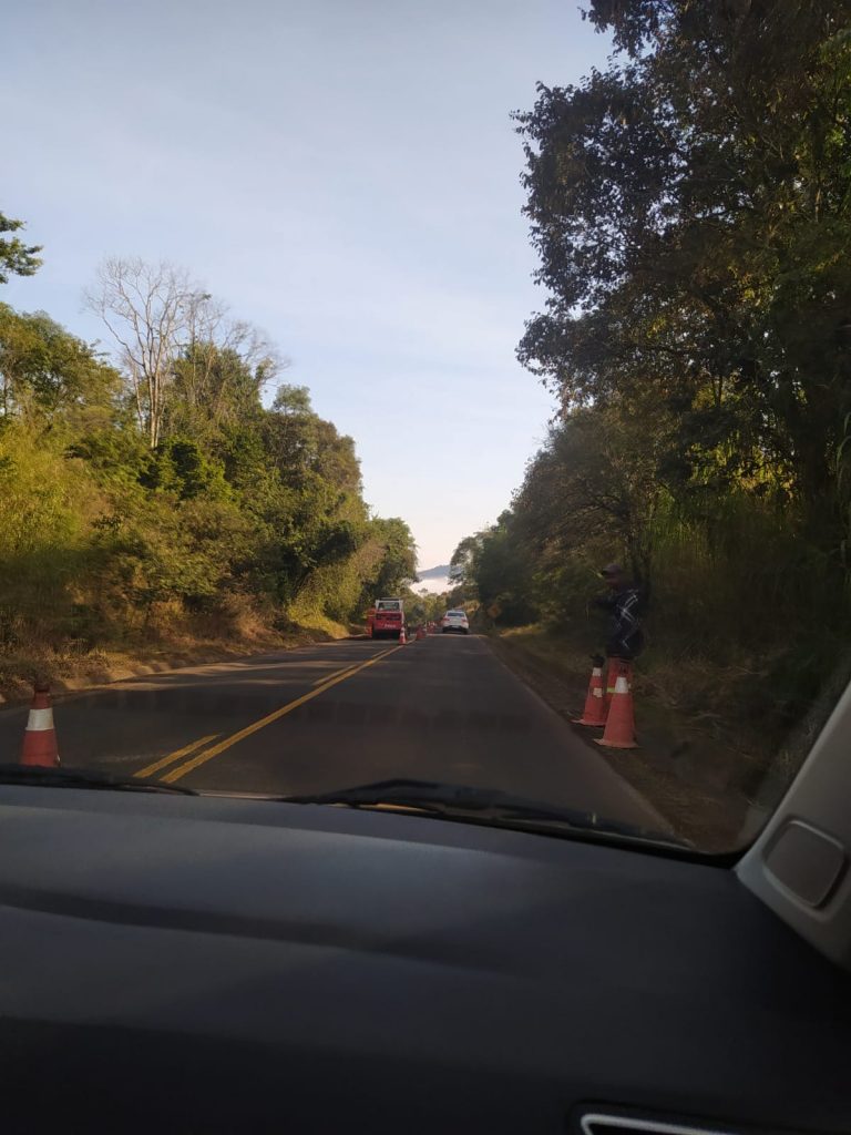A Secretaria de Estado da Infraestrutura realiza uma operação de tapa-buracos na SC-283, na altura de Linha São Luiz em Arvoredo. Motoristas devem ficar atentos, pois há máquinas na pista.
